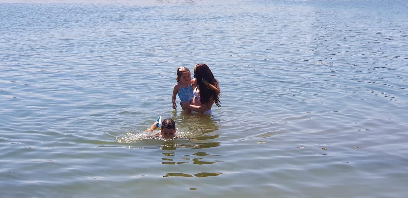 El agua, al ser un pantano, no es clara si no que tiene un tono verdoso. No obstante, lejos de ser desagradable, estaba limpia y fresca. Vimos a algunas familias con colchonetas y la verdad es que se presta a llevarlas porque el agua no se mueve. Hay algunos nenúfares y vimos libélulas. Mi hijo especialmente, estaba feliz.